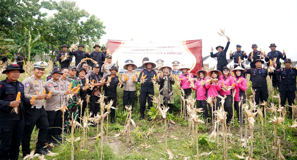 SRAGEN, BANKOM SEMARANG NEWS.ID – Satuan Brigrade Mobile (Sat Brimob) Polda Jateng menggelar panen raya jagung di lahan pertanian milik