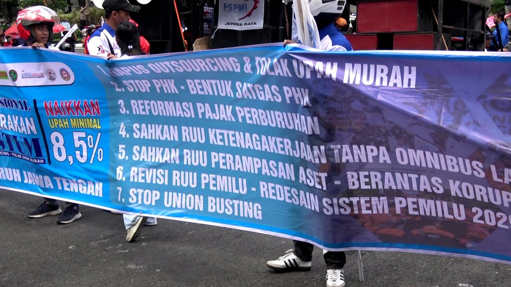 KOTA SEMARANG, BANKOM SEMARANG NEWS.ID – Ratusan buruh yang tergabung dalam Aliansi Buruh Jawa Tengah (ABJT), Presidium Jawa Tengah, Perwakilan
