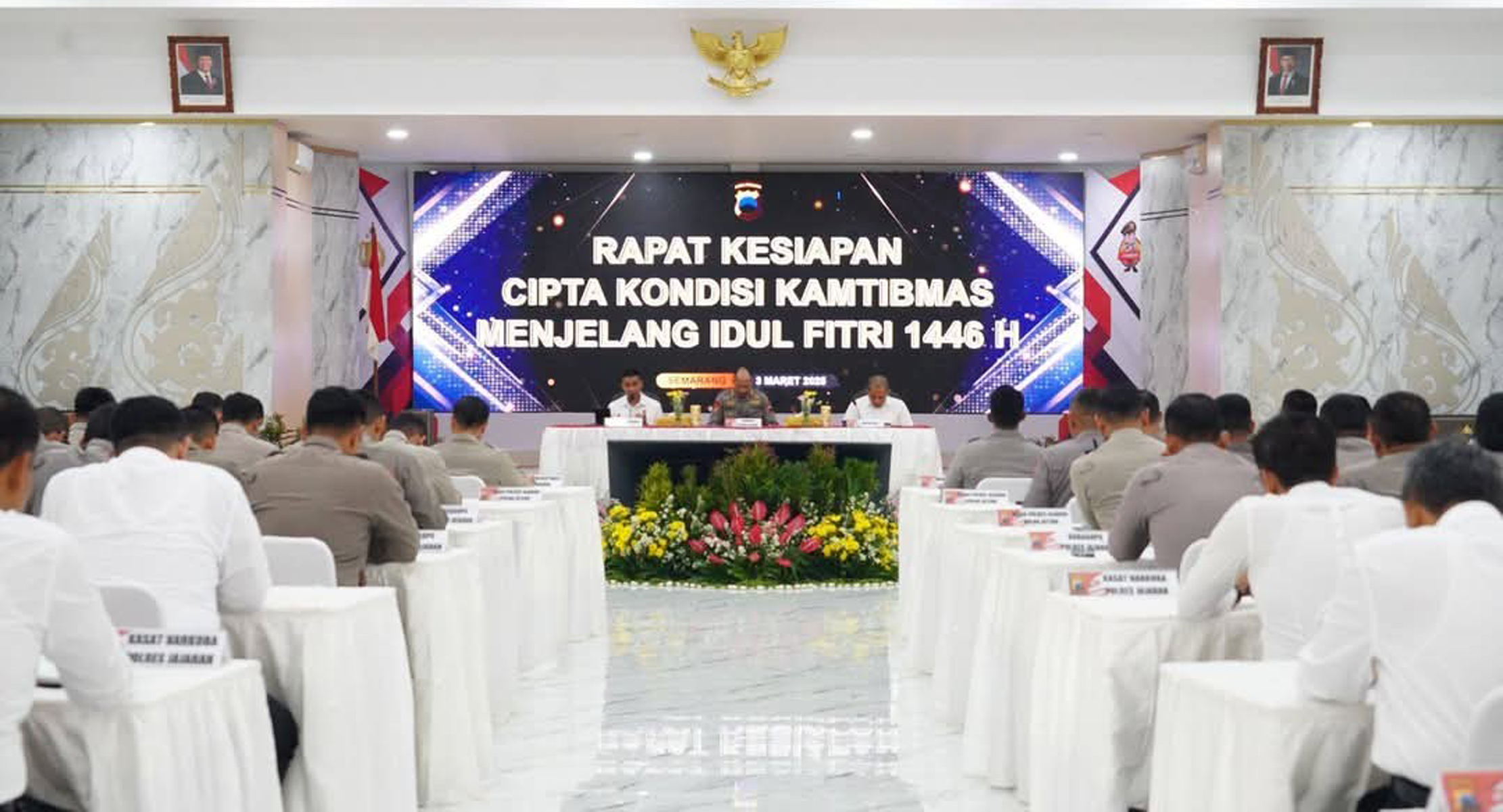 KOTA SEMARANG, BANKOM SEMARANG NEWS.ID – Dalam upaya menjaga situasi keamanan dan ketertiban masyarakat (sitkamtibmas) yang kondusif di wilayah Jawa Tengah selama bulan Ramadhan dan menjelang Hari Raya Idul Fitri 1446 H, Polda Jawa Tengah menggelar Rapat Kesiapan Cipta Kondisi Kamtibmas di Gedung Borobudur, Mapolda Jateng, Senin (03/03/2025) pagi.