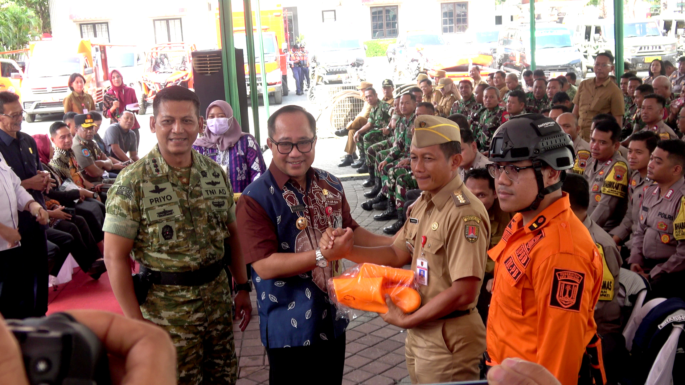 Acara ditutup dengan penyerahan perlengkapan mitigasi oleh Wakil Wali Kota bersama Dandim 0733/KS, diikuti sesi foto bersama. Kemudian dilakukan inspeksi peralatan oleh pimpinan Forkopimda dan stakeholder.