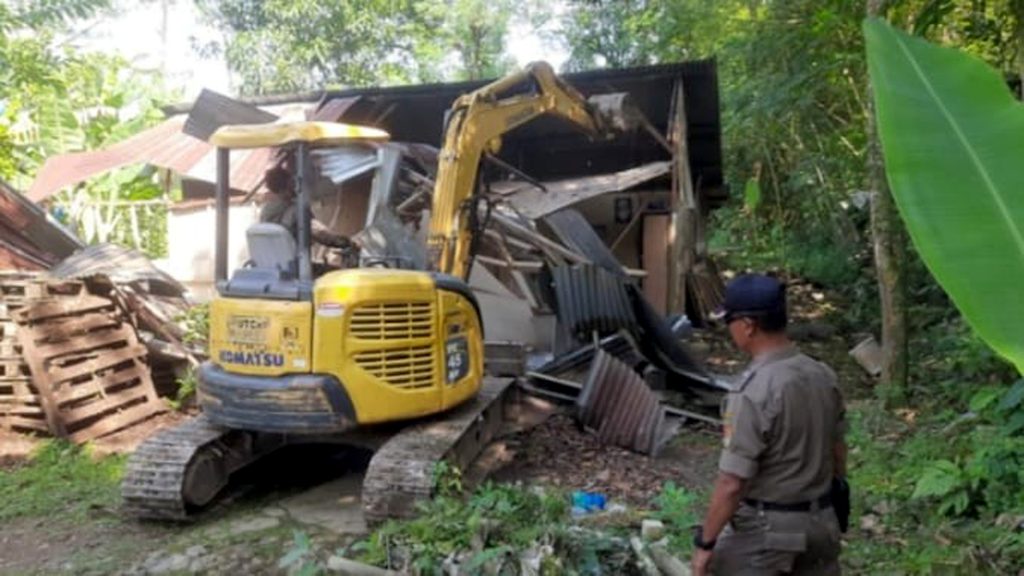 KOTA SEMARANG, BANKOM SEMARANG NEWS.ID – Satuan Polisi Pamong Praja (Satpol PP) Kota Semarang menertibkan sebuah rumah ilegal yang berdiri