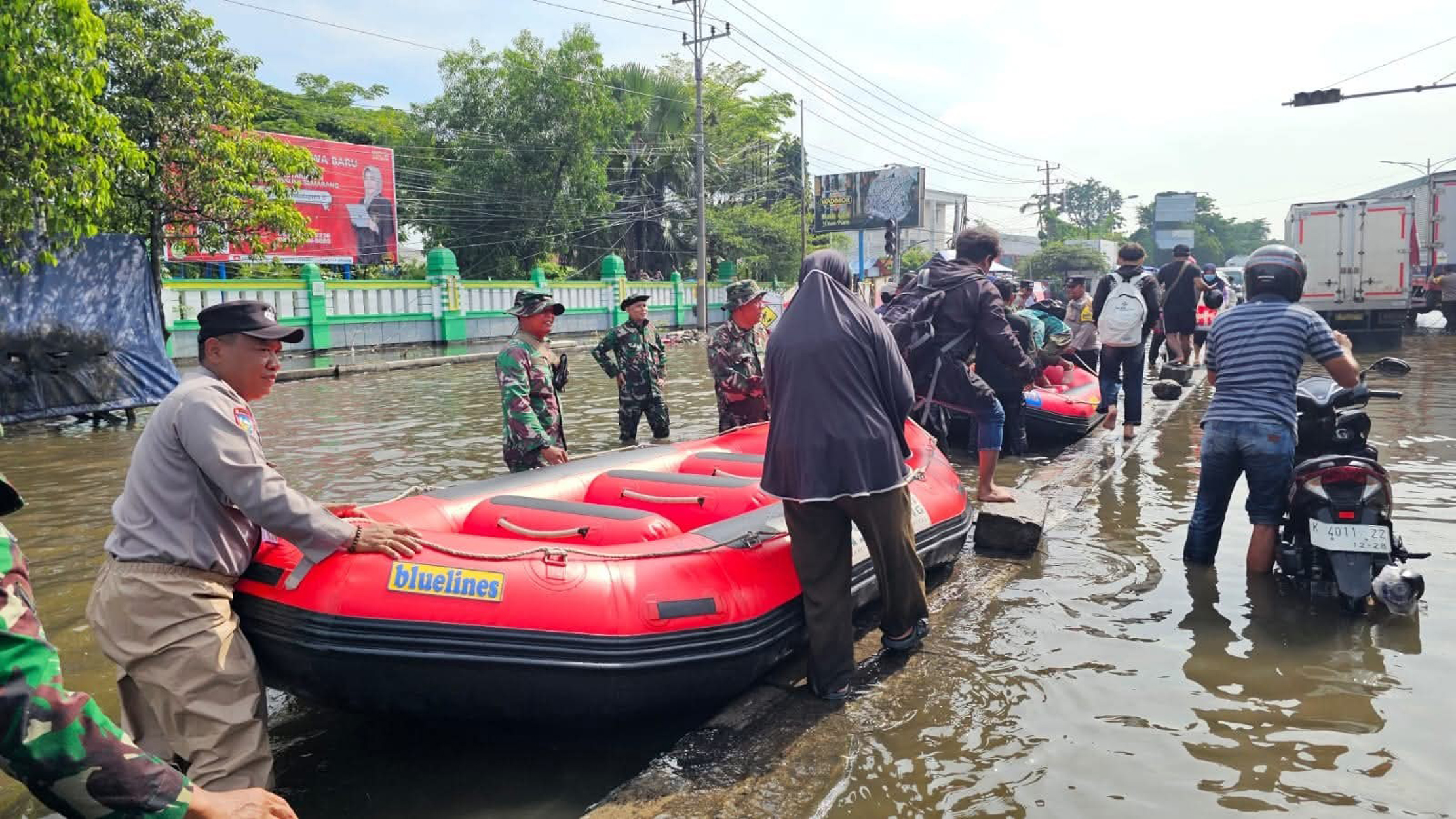 Selain melakukan rekayasa lalu lintas, jajaran Satlantas Polrestabes Semarang juga membantu evakuasi warga yang hendak menuju RS Sultan Agung menggunakan perahu karet. Langkah tersebut diambil untuk memastikan masyarakat tetap dapat memperoleh pelayanan kesehatan di tengah genangan air yang belum surut.