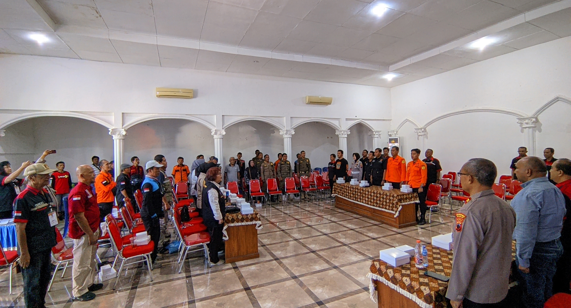 Salah satu topik penting yang dibahas adalah efektivitas komunikasi di lapangan, khususnya dalam penggunaan frekuensi HT (Handy Talky) oleh para relawan dalam menyampaikan laporan kejadian secara real time.