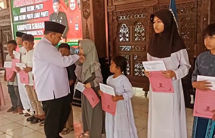 Bupati Semarang Menyerahkan Dana Bansos Anak Yatim Piatu Dan Yatim Piatu Diluar Panti Asuhan.