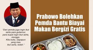 JAKARTA, BANKOM SEMARANG NEWS.ID – Presiden Prabowo Subianto memperbolehkan pemerintah daerah membantu membiayai Program Makan Bergizi Gratis (MBG), ini merupakan