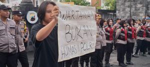 SEMARANG, BANKOM SEMARANG NEWS.ID – Aksi Aliansi Jurnalis Independen (AJI) Kota Semarang mengecam keras tindakan oknum wartawan yang ikut mengintervensi