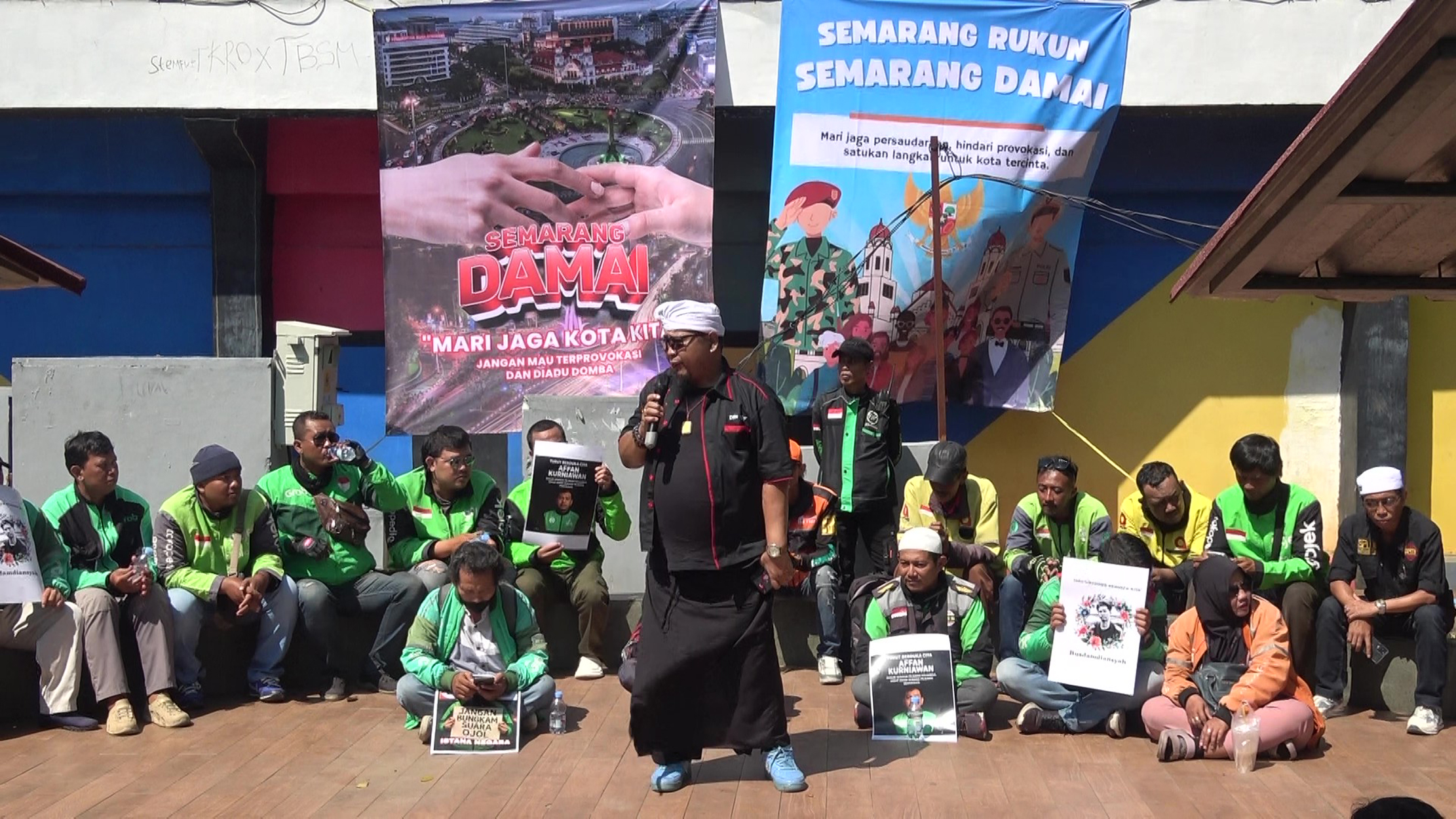 “Ojol Semarang jangan sampai diadu domba dengan aparat. Kita tetap solid, menjaga kondusifitas kota, dan tidak merusak fasilitas umum. Kita tunjukkan bahwa ojol adalah pejuang keluarga yang baik dan jujur,” tegas Dayat.