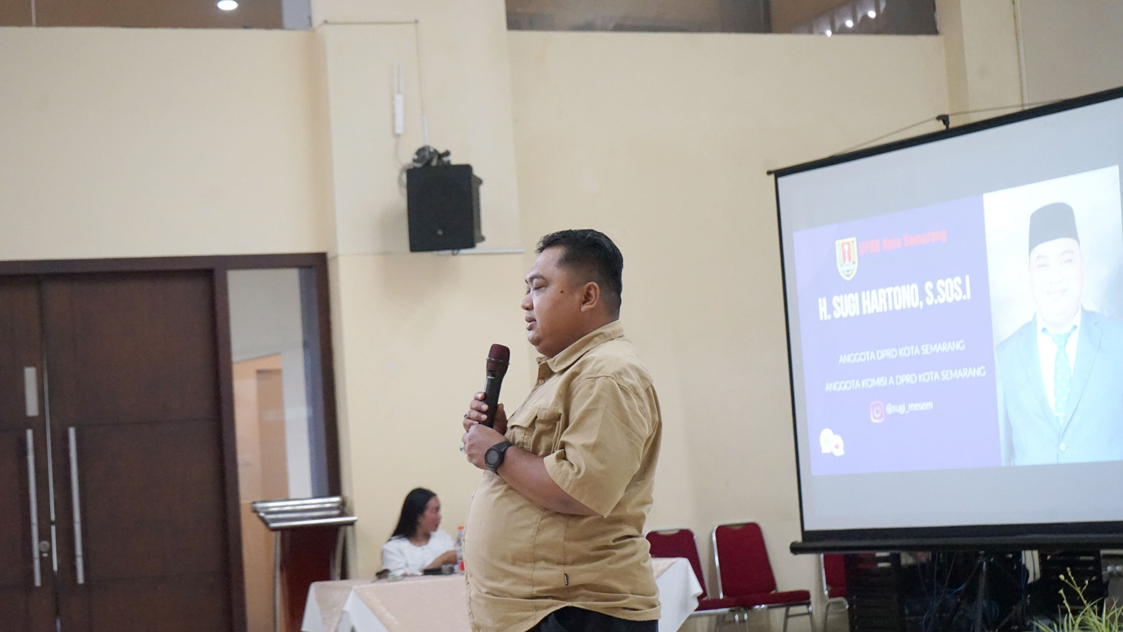 Kegiatan ini menghadirkan narasumber H. Sugi Hartono, anggota Komisi A DPRD Kota Semarang, yang memberikan pemaparan komprehensif terkait strategi fundraising dan pengembangan ekonomi kreatif sebagai solusi kemandirian organisasi.