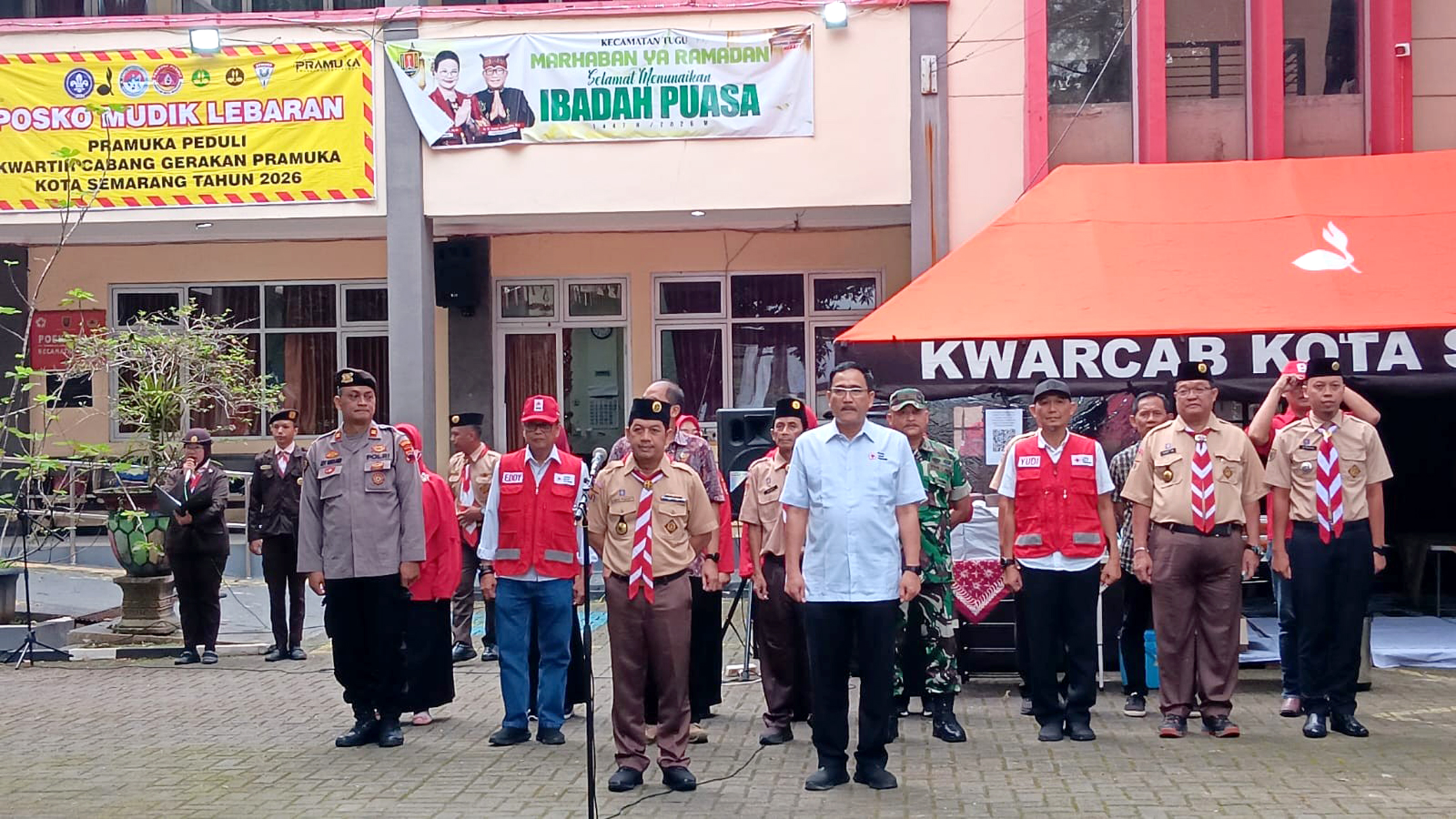 KOTA SEMARANG, Bankomsemarangnews.id – Semangat gotong royong dan kepedulian terhadap keselamatan pemudik kembali ditunjukkan oleh jajaran Gerakan Pramuka Kota Semarang melalui pembukaan Posko Mudik Lebaran Tahun 2026 Kwartir Cabang Kota Semarang yang digelar pada Jumat (13/03/2026) sore di halaman Kantor Kecamatan Tugu, Semarang.