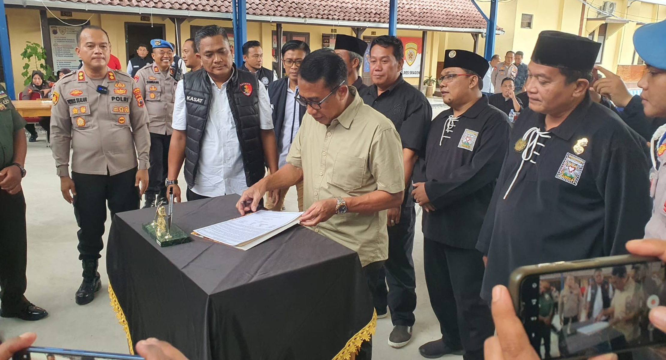 Para tokoh perguruan silat yang hadir dalam pertemuan tersebut menyambut positif langkah yang diinisiasi oleh Kapolres Sragen. Sebagai bentuk komitmen, mereka bersama-sama menandatangani SKB, yang menjadi simbol kesepahaman untuk menjaga perdamaian dan keamanan di Kabupaten Sragen.