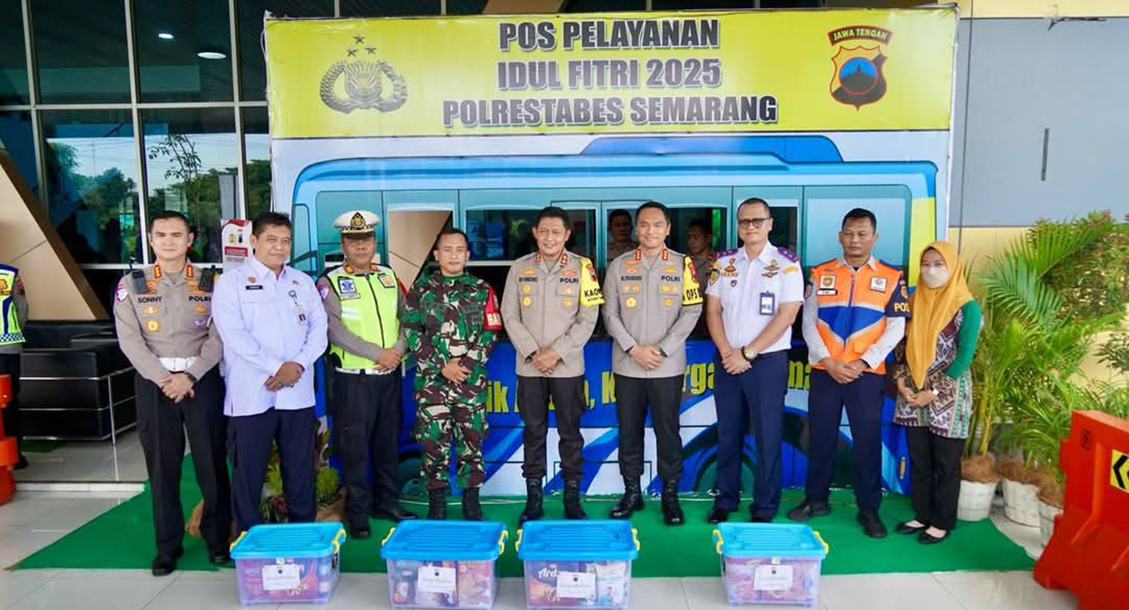 Pemeriksaan tidak hanya terbatas pada pemeriksaan kendaraan, tetapi juga meliputi evaluasi menyeluruh terhadap posko pelayanan dan posko kesehatan gratis yang berada di dalam Terminal Mangkang. Kegiatan diakhiri dengan penyerahan bantuan secara simbolis perbekalan kepada petugas yang bertugas, yang diserahkan oleh Kapolda dan Kapolrestabes Semarang.