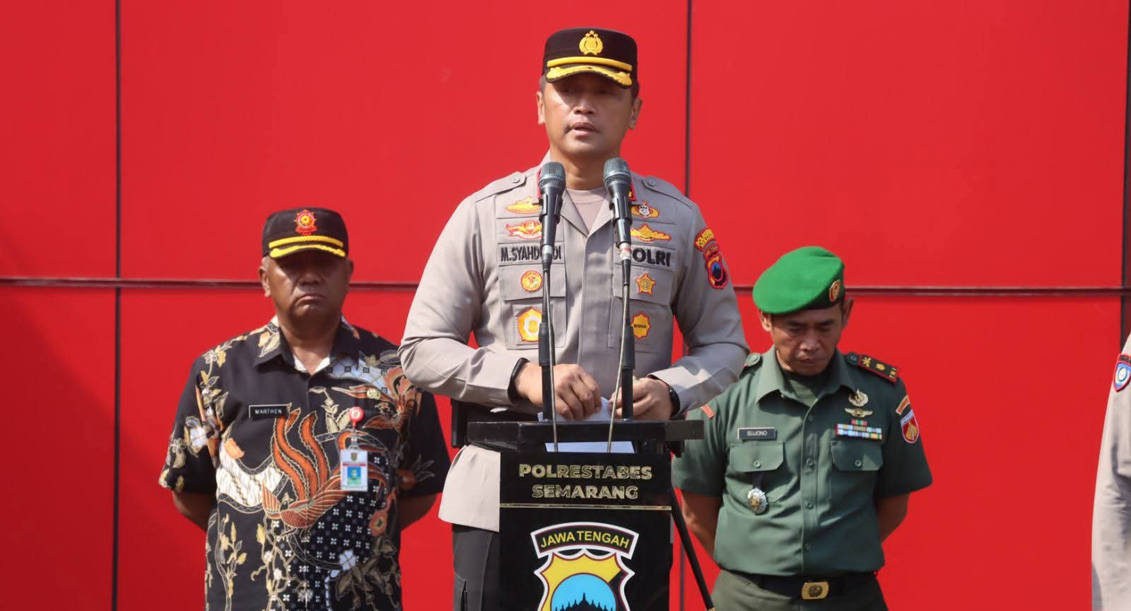 Apel ini diikuti jajaran pejabat utama Polrestabes Semarang, Wakapolrestabes, serta Dandim 0733/BS Semarang yang diwakili Danramil Mayor Sujono. Hadir pula Walikota Semarang yang diwakili Kasatpol PP, Bapak Marthen, bersama para Kapolsek jajaran. Sementara itu, pasukan apel terdiri atas perwakilan Kanit Binmas Polsek, Babinsa Koramil Kodim Semarang, Bhabinkamtibmas, hingga para lurah se-Kota Semarang.