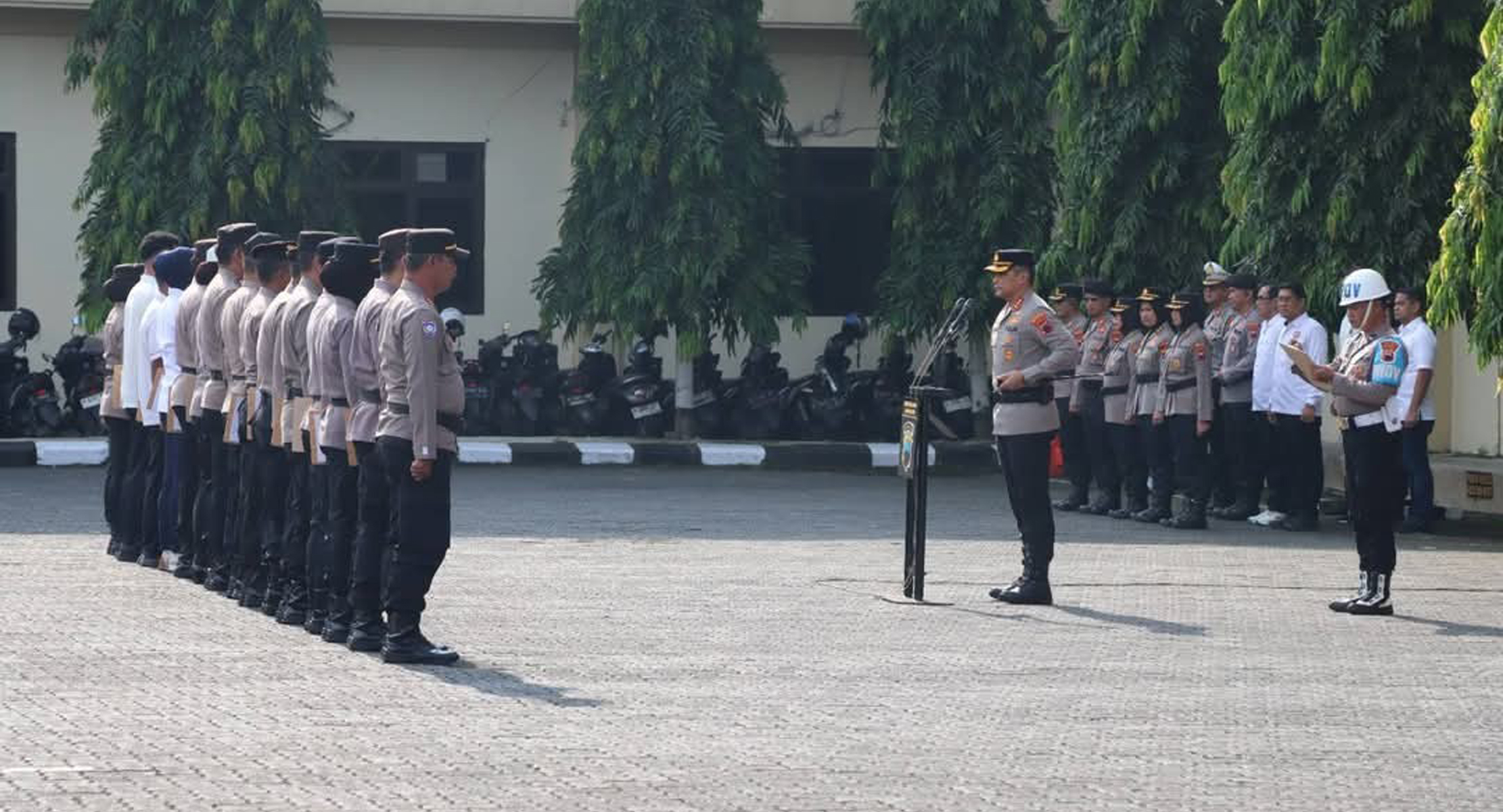 Kombes Pol M Syahduddi menyampaikan ucapan selamat hari raya Idulfitri kepada rekan-rekannya, “Selamat pagi rekan-rekan. Terima kasih kepada seluruh anggota yang telah melaksanakan apel pagi dan halal bi halal pada pagi hari ini. Di hari pertama bertugas setelah mengamankan Hari Raya Idulfitri, atas nama keluarga besar Polrestabes Semarang, saya mengucapkan selamat Hari Raya Idulfitri 1446 H, dan mohon maaf yang sebesar-besarnya atas segala kekurangan.”