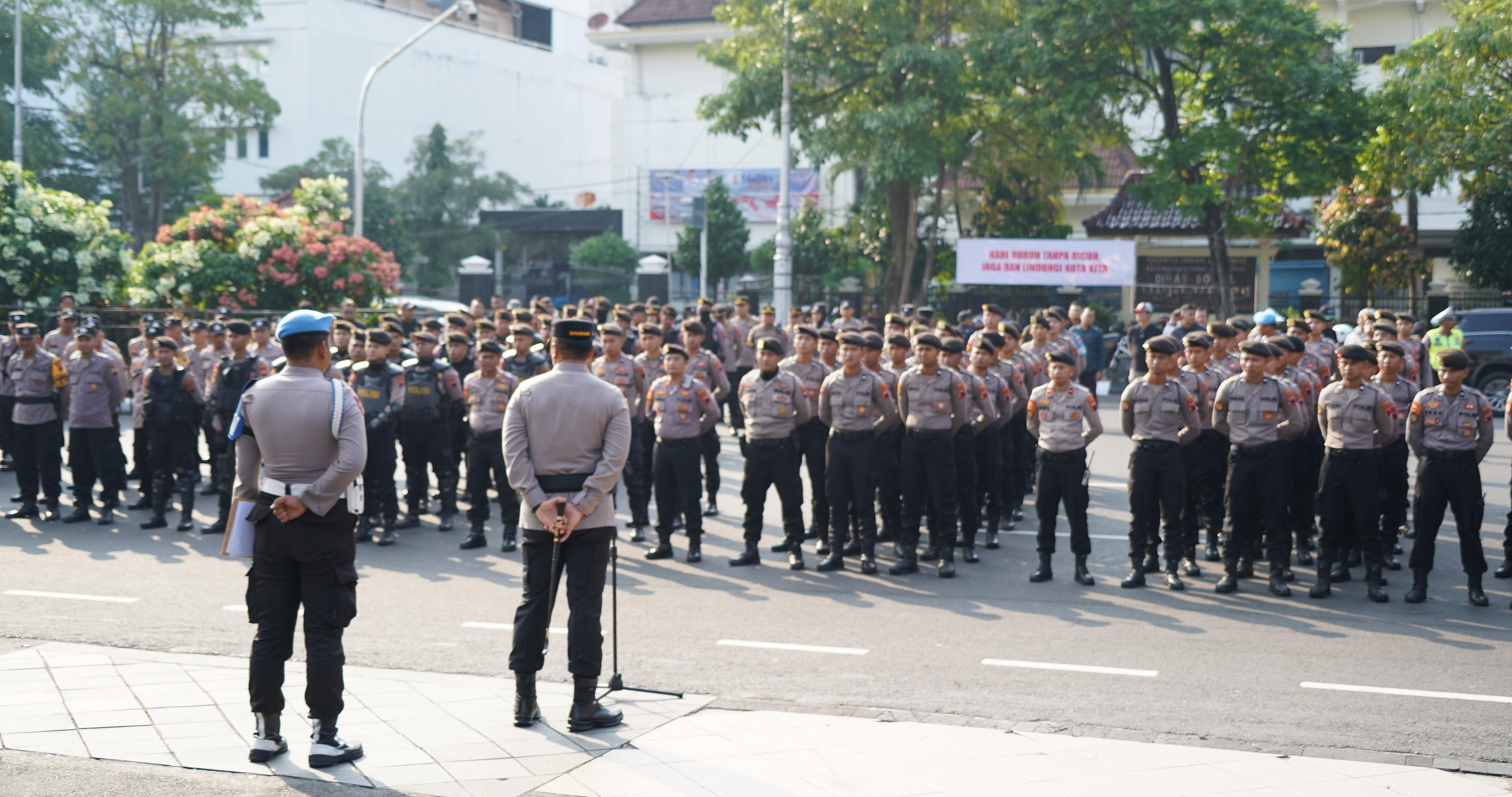 KOTA SEMARANG, BANKOM SEMARANG NEWS.ID – Dalam rangka peringatan Hari Buruh Internasional (May Day) 2025, Kapolrestabes Semarang Kombes Pol Syahduddi, S.I.K., M.Si menegaskan bahwa seluruh anggota Polri wajib melaksanakan pengamanan secara humanis dan tidak membawa senpi. Hal ini disampaikannya saat memimpin apel kesiapan pengamanan menjelang dimulainya aksi unjuk rasa buruh yang digelar di depan Kantor Gubernur Jawa Tengah, Kamis (01/05/2025) pagi pukul 08.00 WIB