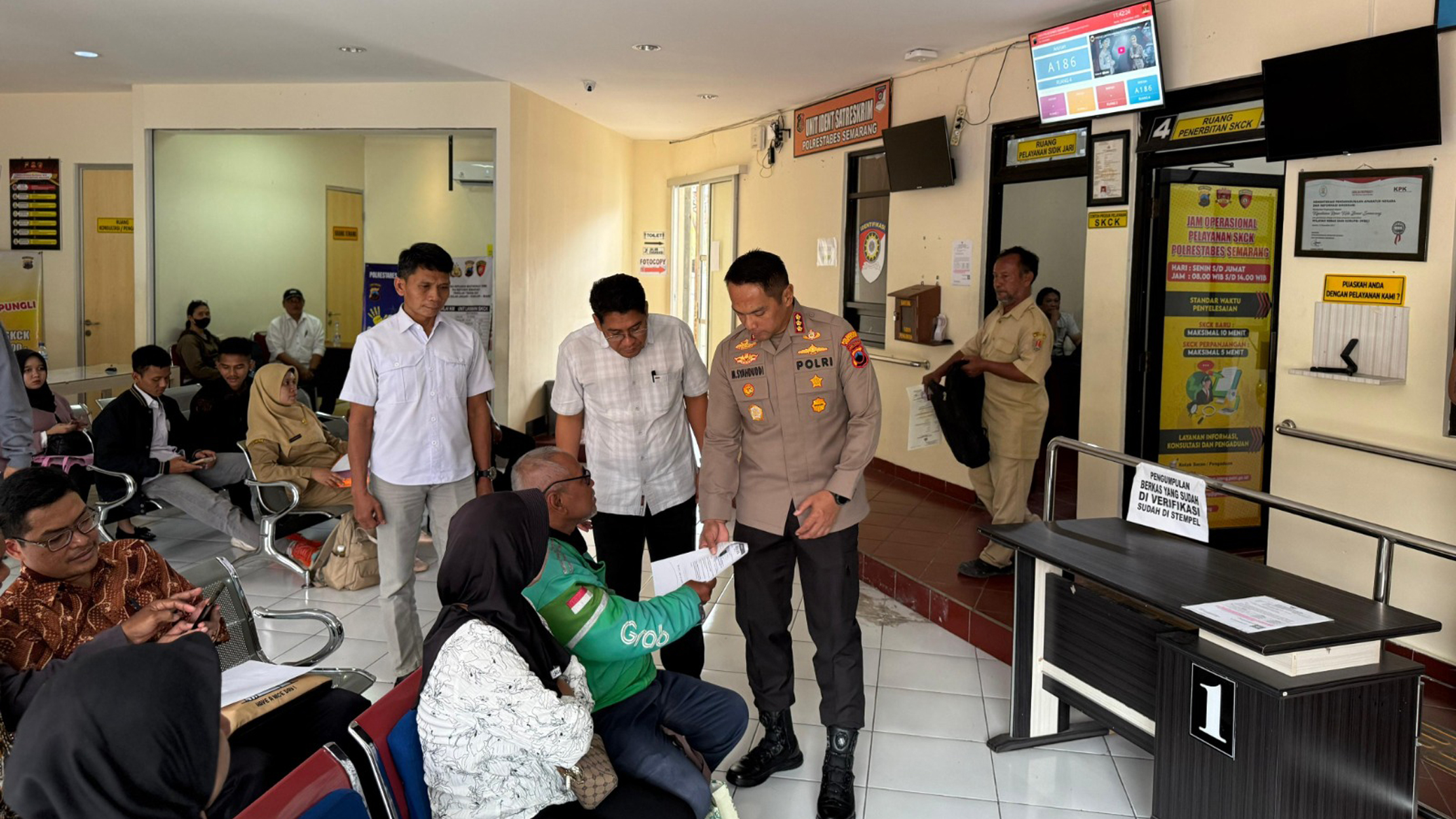 KOTA SEMARANG, BANKOM SEMARANG NEWS.ID – Kapolrestabes Semarang Kombes Pol M. Syahduddi meninjau langsung ruang pelayanan Surat Keterangan Catatan Kepolisian (SKCK) Polrestabes Semarang, Senin (15/09/2025). Peninjauan dilakukan untuk memastikan pelayanan publik tetap optimal di tengah meningkatnya jumlah pemohon, seiring dibukanya lowongan kerja Pegawai Pemerintah dengan Perjanjian Kerja (P3K) paruh waktu oleh Pemkot Semarang.