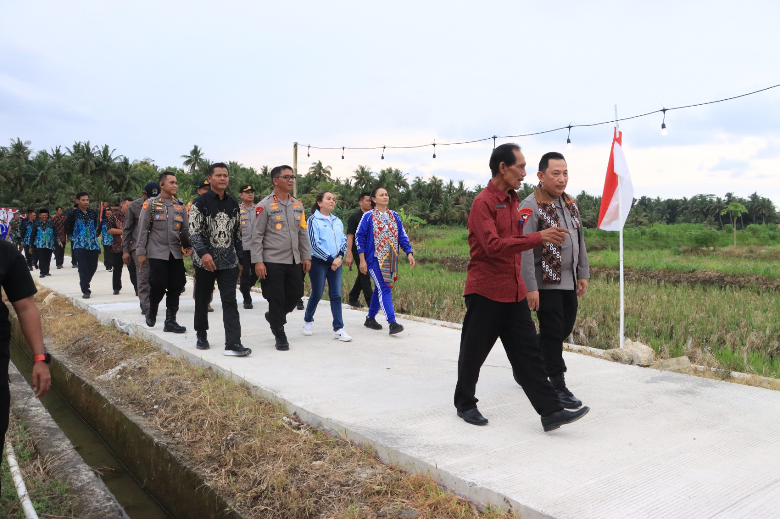 Acara ini kemudian dilanjutkan dengan kunjungan lapangan untuk meninjau langsung hasil pengerjaan jalan yang telah diresmikan.