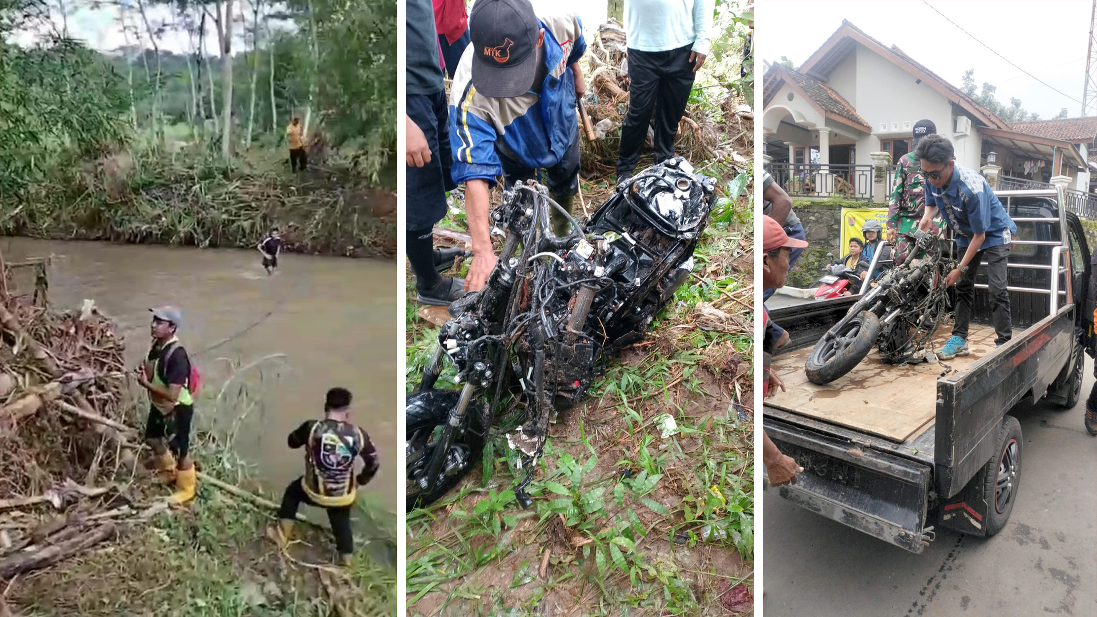 “Betul, motor ditemukan sekitar pukul 10.30 WIB di aliran sungai Dusun Gilisari, sekitar empat kilometer dari lokasi terjatuh. Ditemukan tinggal rangkanya saja,” jelasnya.