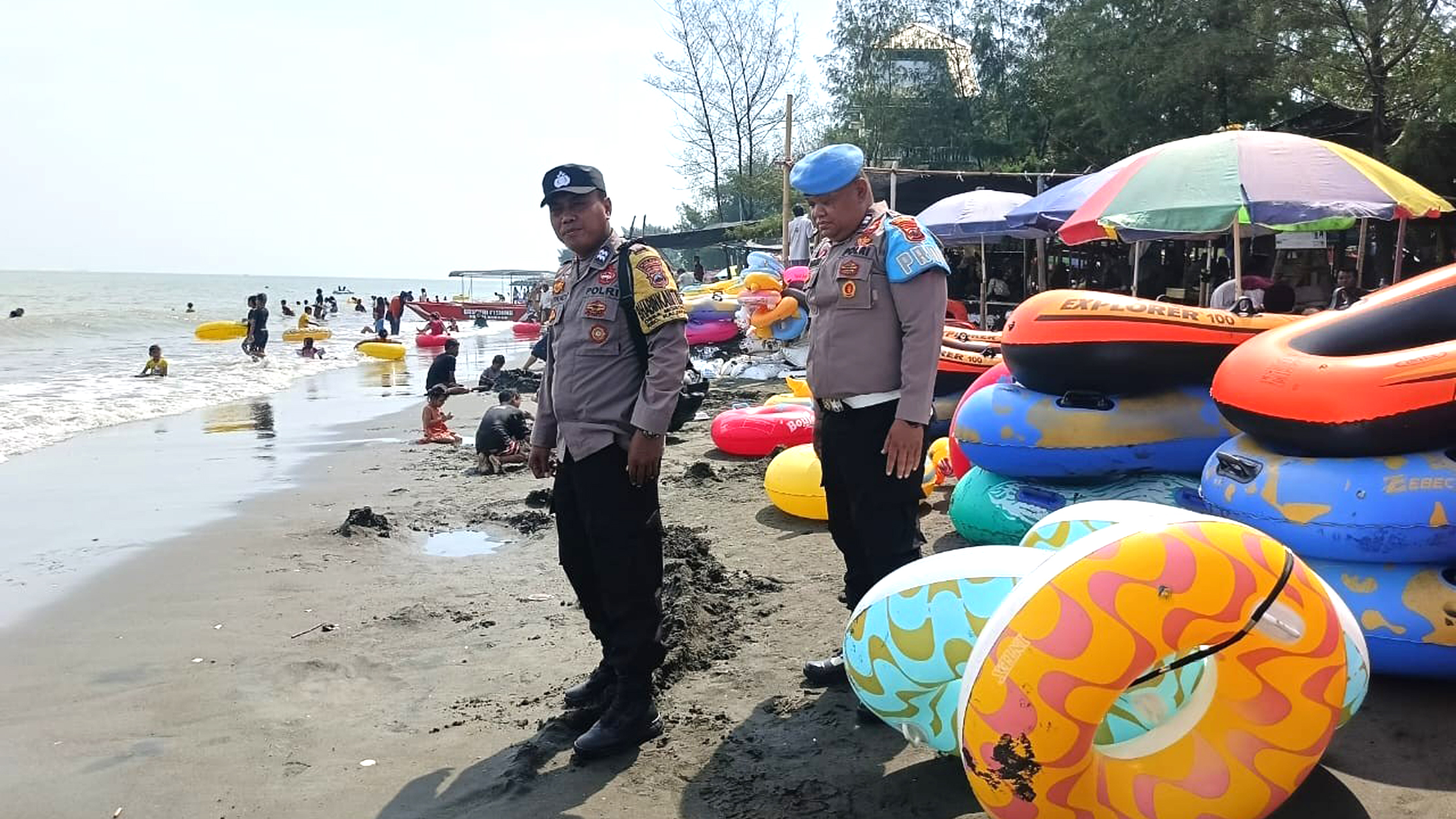 Tak hanya itu, petugas turut memberikan imbauan kamtibmas kepada para pengunjung agar tetap waspada, menjaga barang bawaan, mengawasi anak-anak, serta berhati-hati saat beraktivitas di kawasan pantai.