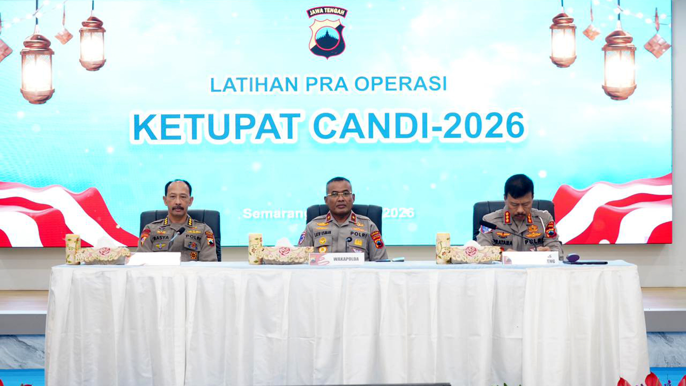 KOTA SEMARANG, Bankomsemarangnews.id – Polda Jateng mematangkan kesiapan pengamanan Hari Raya Idul Fitri 1447 Hijriah melalui kegiatan Latihan Pra Operasi (Lat Pra Ops) Terpusat Operasi Ketupat Candi 2026 yang digelar di Gedung Borobudur Mapolda Jateng, Rabu (11/03/2026).