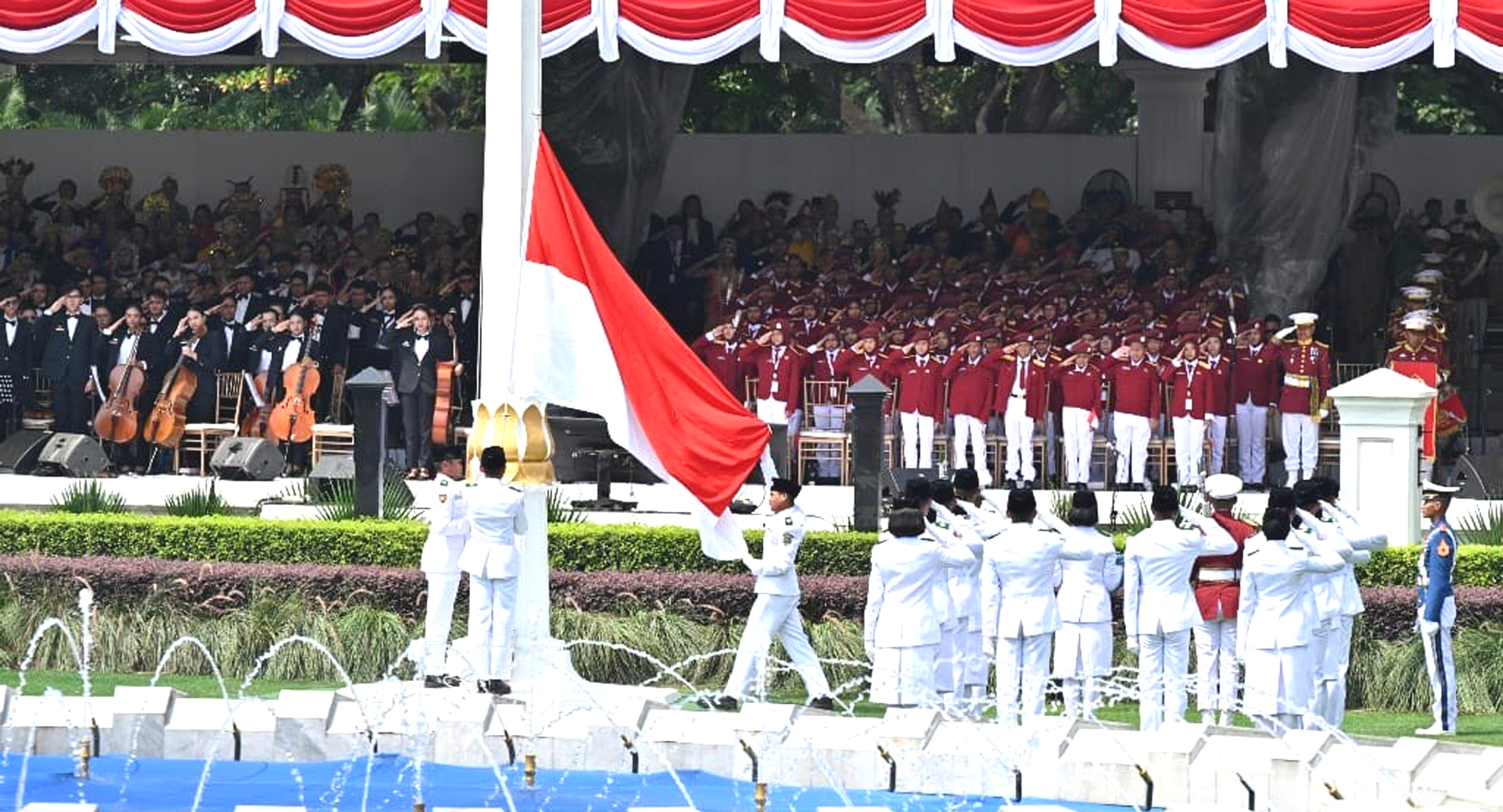 Upacara berlangsung khidmat dan penuh makna, dipimpin langsung oleh Presiden RI Prabowo Subianto. Prosesi dimulai dengan dentuman 17 meriam, dilanjutkan pembacaan naskah proklamasi, serta pengibaran Sang Saka Merah Putih oleh Pasukan Pengibar Bendera Pusaka (Paskibraka) tahun 2025.
