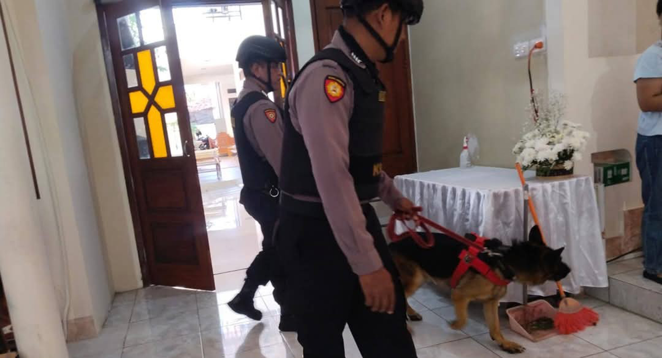 Anjing tersebut didampingi pawang menyusuri mulai dari area parkir, gedung serbaguna, area dalam gereja, gedung sekretariat dan ruang belakang.