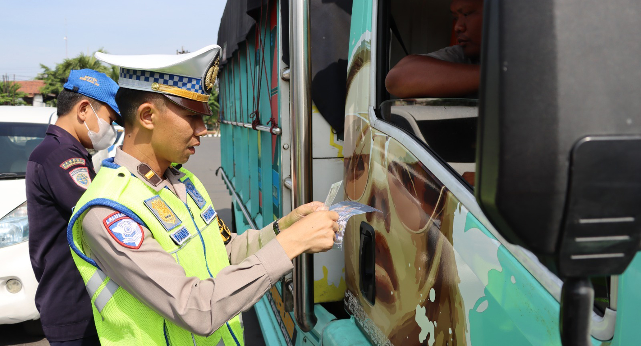 Sementara dari aspek teknis, pengecekan meliputi fungsi rem tangan, alat pengukur kecepatan, sabuk keselamatan pengemudi, kondisi ban, serta kaca depan yang tidak retak.