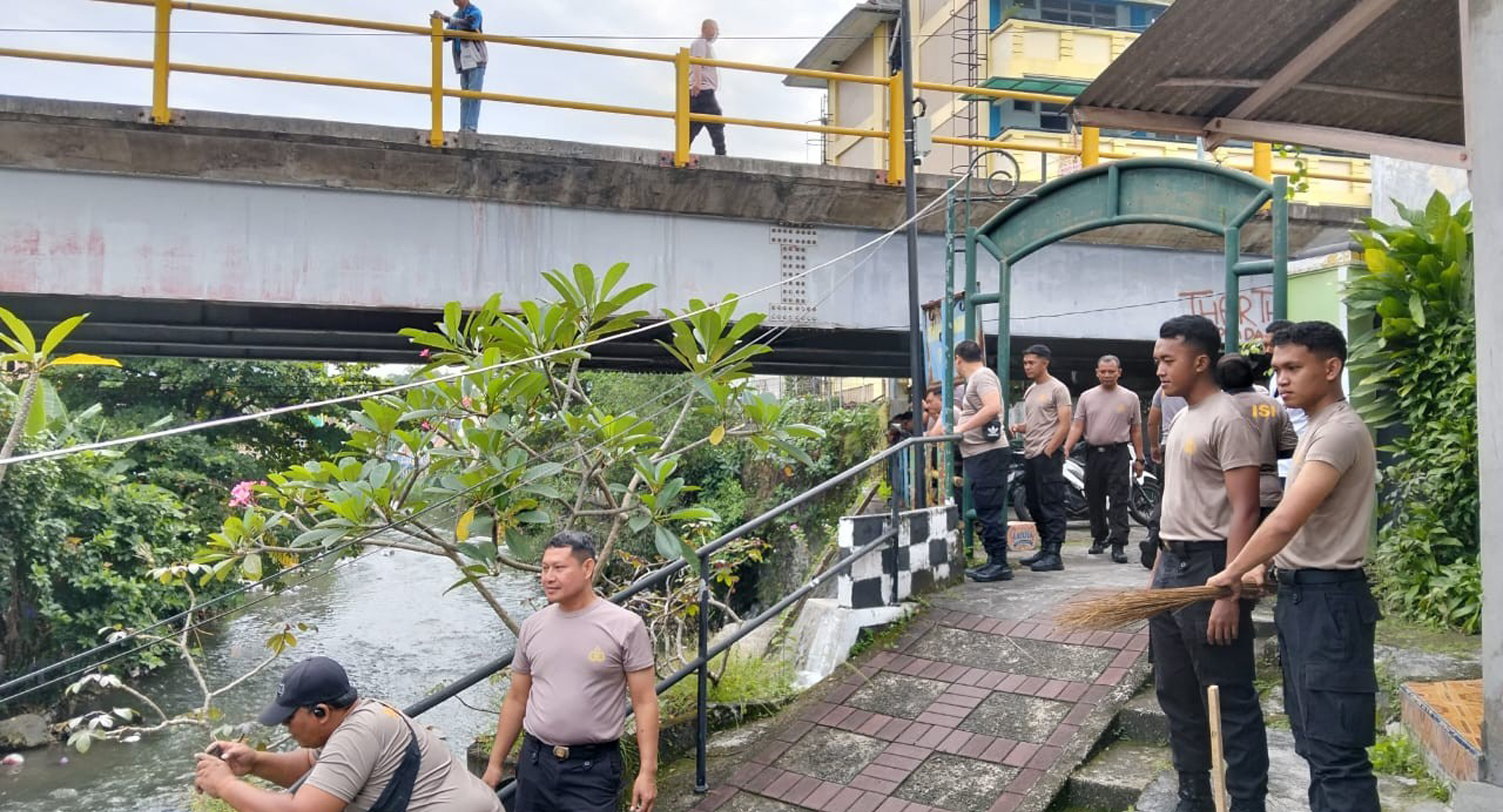 Dengan penuh semangat, mereka membersihkan sampah, merapikan lingkungan, serta memperindah area sekitar bantaran sungai.