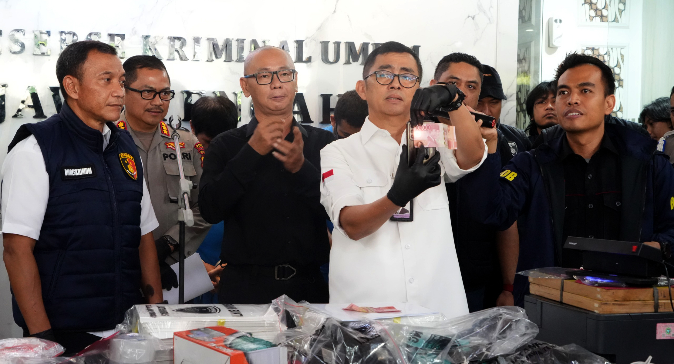 “Dari penggerebekan di lokasi, kami temukan berbagai peralatan cetak, 500 lembar uang palsu siap edar, 1.800 lembar setengah jadi, dan 480 lembar yang belum dipotong. Modus mereka menjual uang palsu dengan rasio 1:3, artinya Rp100 juta uang palsu dijual seharga Rp30 juta,” ungkap Kombes Pol Dwi Subagio.