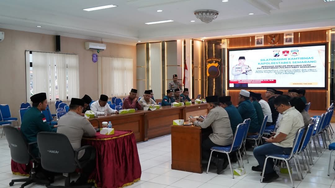 KOTA SEMARANG, BANKOM SEMARANG NEWS.ID – Kapolrestabes Semarang, Kombes Pol M. Syahduddi, menggelar pertemuan tatap muka dengan Pengurus Dai Kamtibmas Polrestabes Semarang pada Rabu sore, 7 Mei 2025, di Mapolrestabes Semarang. Pertemuan tersebut bertujuan untuk mempererat kerja sama antara kepolisian dan tokoh agama dalam menanggulangi berbagai permasalahan sosial dan menjaga keamanan di Kota Semarang, Kamis (08/05/2025).