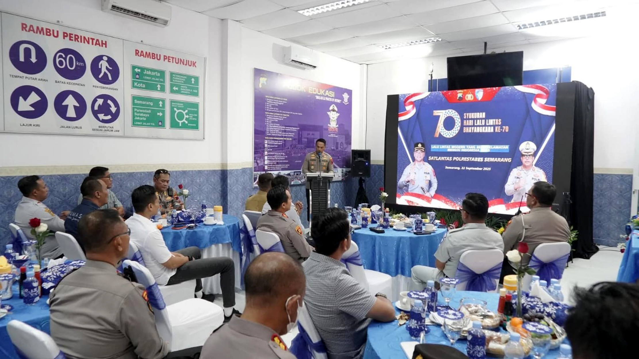KOTA SEMARANG, BANKOM SEMARANG NEWS.ID – Kepolisian Resor Kota Besar (Polrestabes) Semarang menggelar syukuran dalam rangka memperingati Hari Lalu Lintas Bhayangkara ke-70 pada Senin (22/09/2025) di Satpas 1421 Kota Semarang. Acara berlangsung khidmat dan penuh kebersamaan dengan dihadiri jajaran pejabat utama Polrestabes Semarang, instansi terkait, serta seluruh anggota Satuan Lalu Lintas.