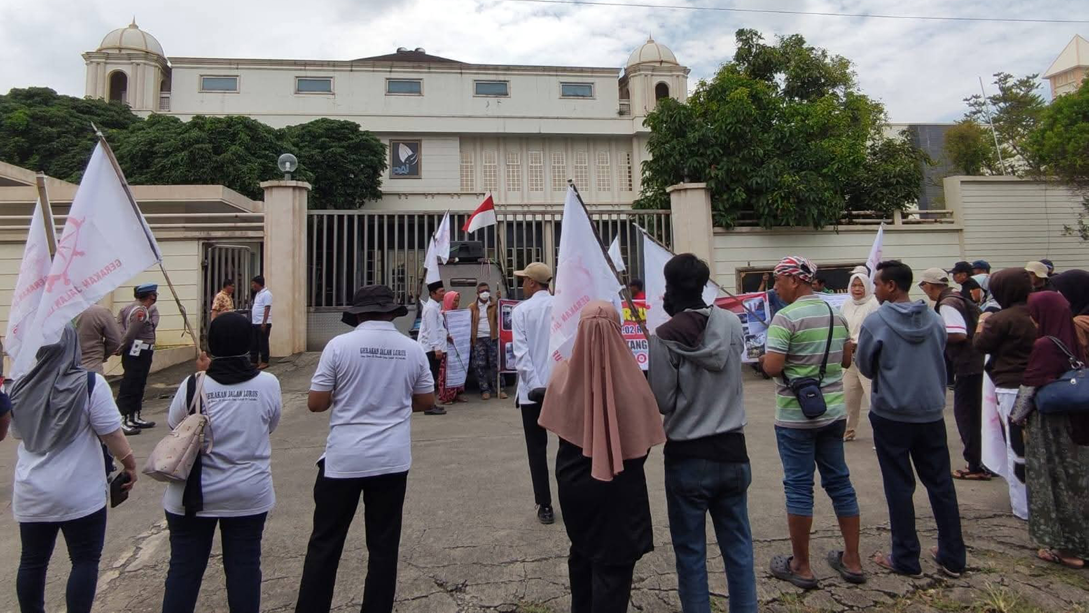 Aksi dimulai sekitar pukul 09.30 WIB dan berjalan tertib hingga selesai. Sekitar 50 peserta aksi membawa spanduk dan melakukan orasi terkait tuntutan penyelesaian kasus longsor pada 2018 yang hingga kini dinilai belum mendapatkan kejelasan ganti rugi dari pihak perusahaan.
