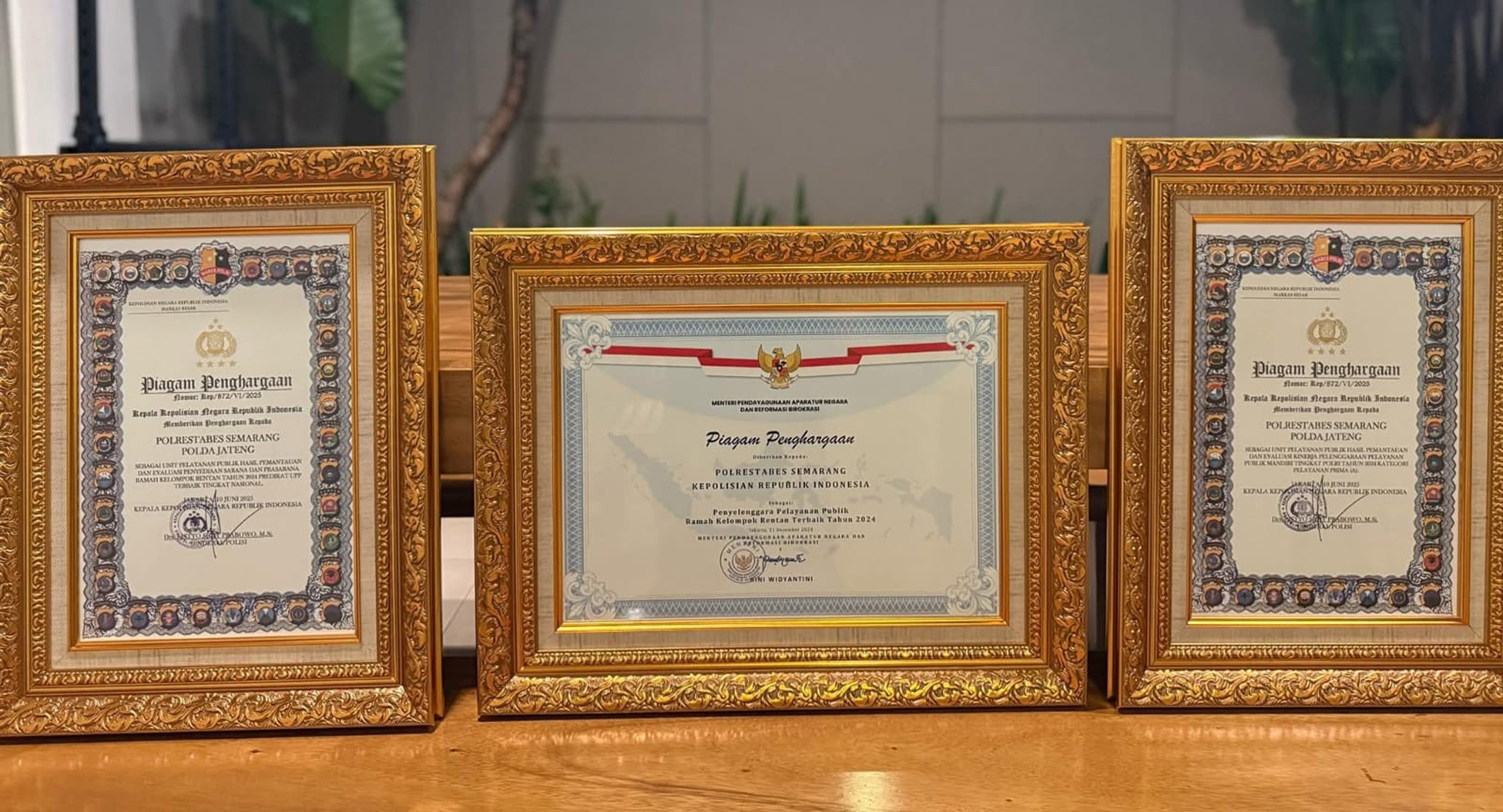 Tak kalah penting, penghargaan ketiga diperoleh dari hasil pemantauan dan evaluasi penyediaan sarana dan prasarana ramah kelompok rentan Tahun Anggaran 2024, yang menempatkan Polrestabes Semarang sebagai Unit Pelayanan Publik Terbaik Tingkat Nasional.