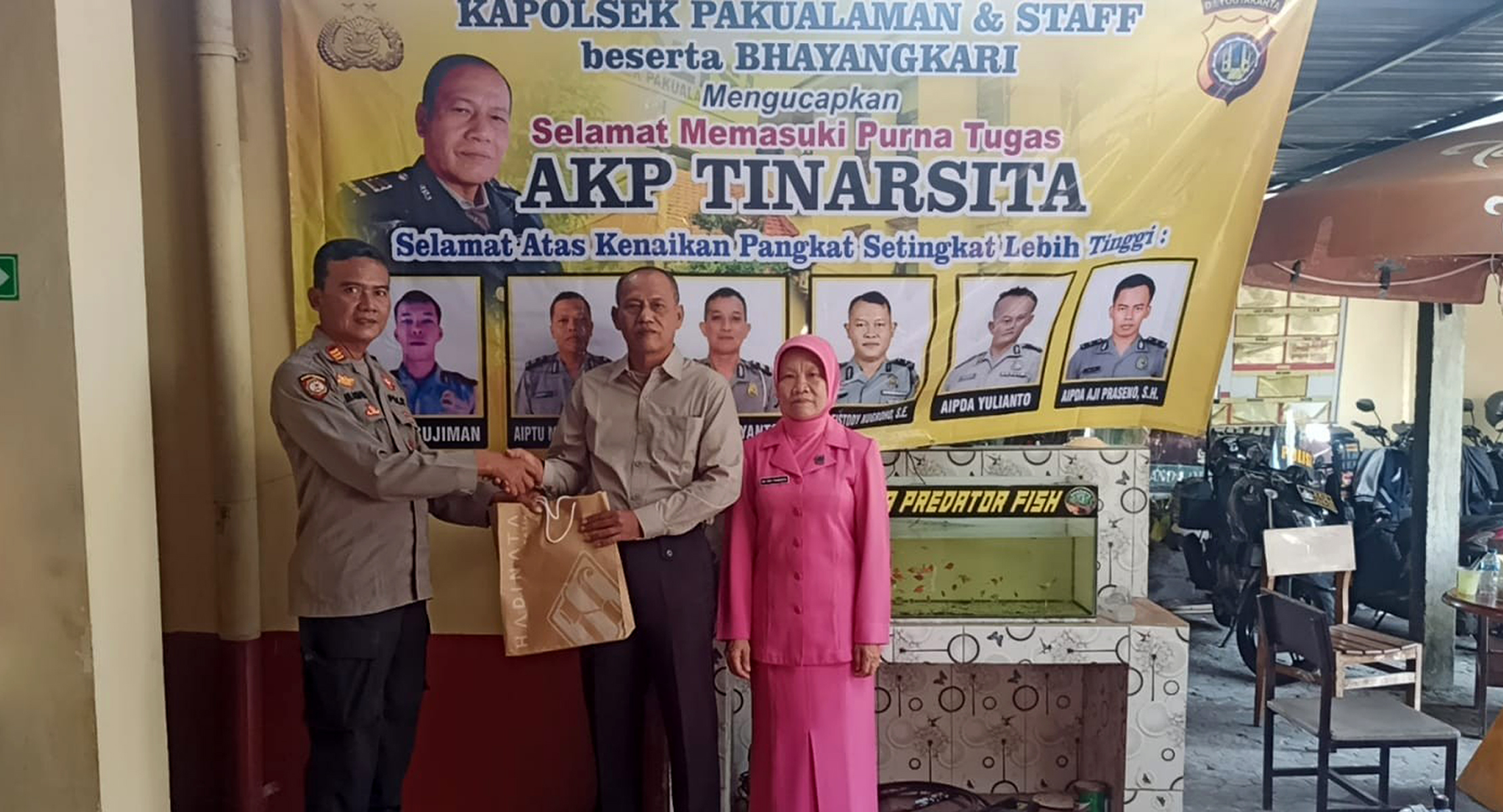Kapolsek Pakualaman dalam sambutannya menyampaikan ucapan terima kasih kepada AKP Tinarsita atas loyalitas dan dedikasi selama bertugas, serta berharap personel yang naik pangkat dapat terus meningkatkan kinerja dan profesionalisme.