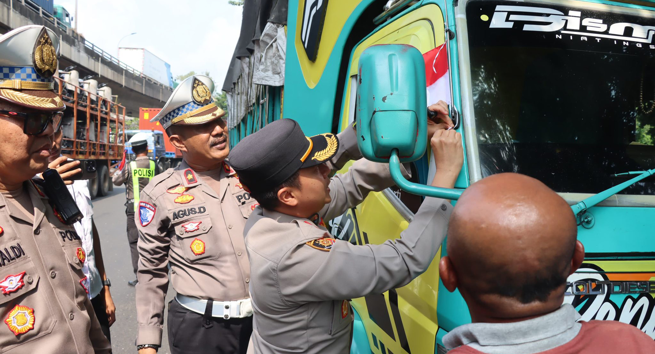 “Melalui kegiatan ini, kami ingin membangkitkan semangat nasionalisme dan cinta tanah air, khususnya kepada para pengemudi yang menjadi bagian penting dalam kehidupan dan perekonomian kita. Pemasangan bendera bukan hanya simbol, tapi bentuk nyata kebanggaan kita sebagai bangsa Indonesia,” ujar AKBP Wiwit.