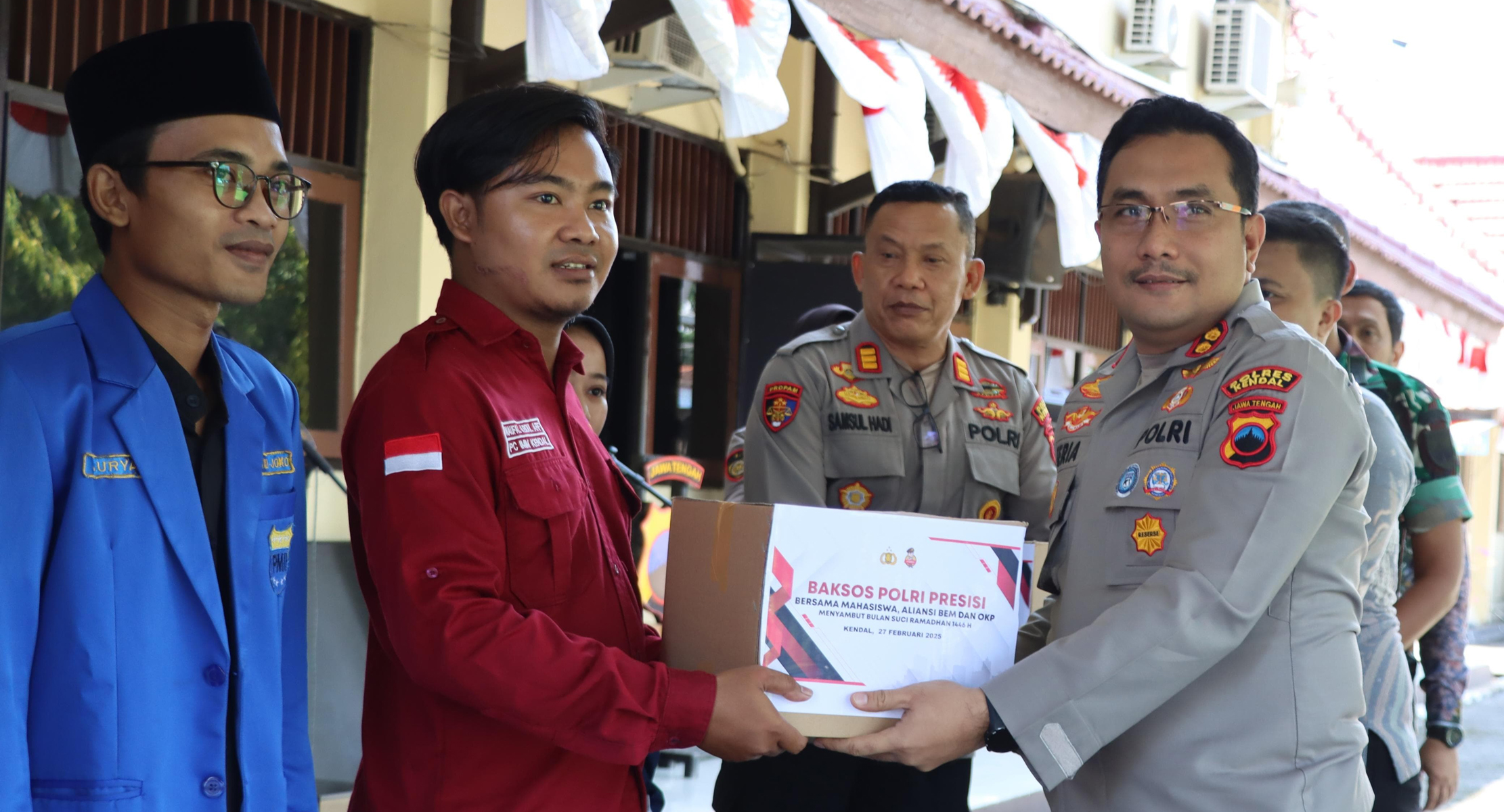 KAB.KENDAL, BANKOM SEMARANG NEWS.ID – Dalam rangka menyambut bulan suci Ramadhan 1446 H, Polres Kendal menggelar kegiatan Bakti Sosial (Baksos) Presisi bersama mahasiswa, aliansi Badan Eksekutif Mahasiswa (BEM), dan Organisasi Kemasyarakatan Pemuda (OKP) Kabupaten Kendal di Aula Tribrata Polres Kendal yang dihadiri oleh jajaran Forkopimda serta perwakilan dari berbagai organisasi mahasiswa, Kamis (27/02/2025).