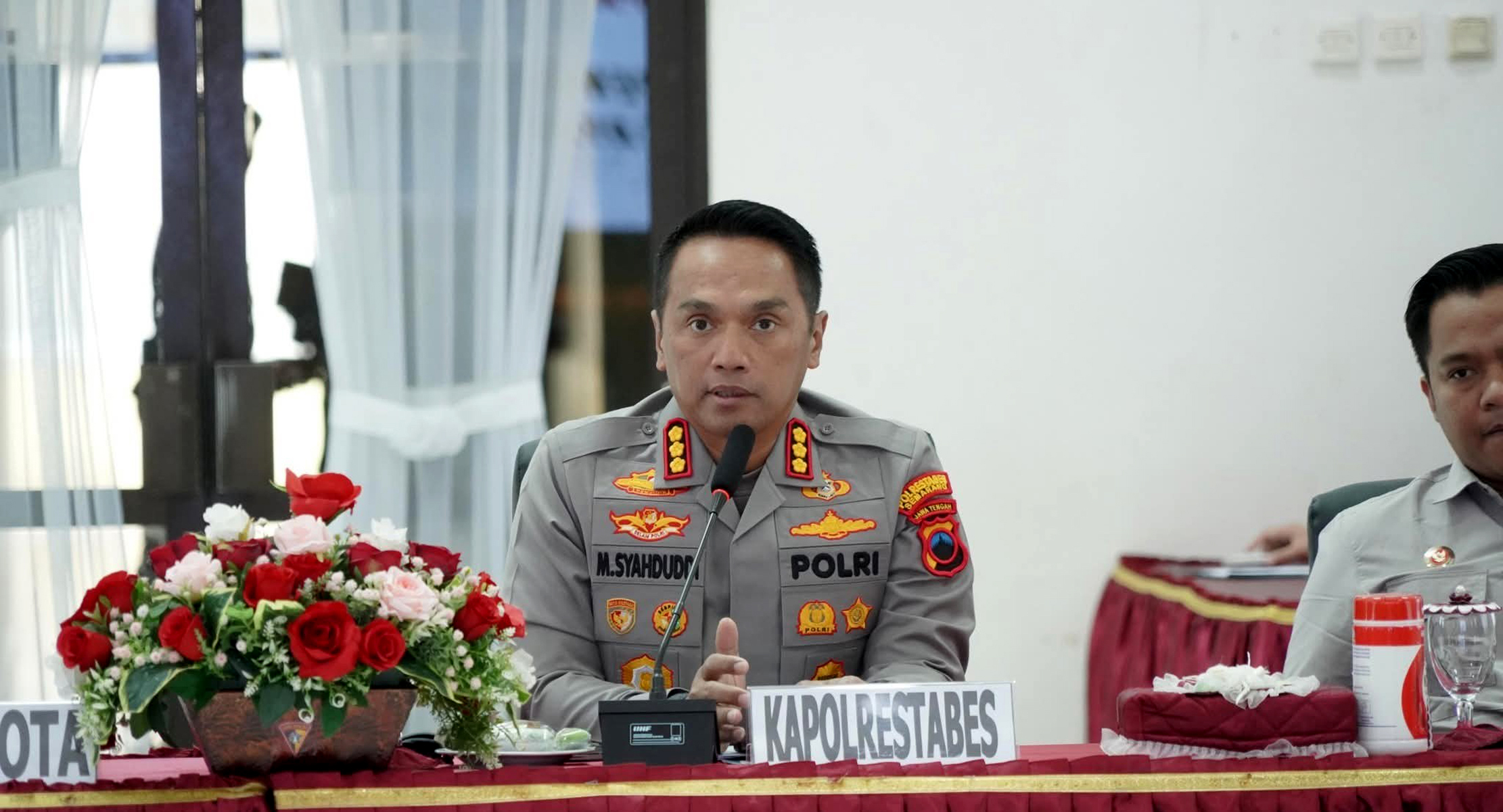 Rakor ini dipimpin langsung oleh Kapolrestabes Semarang, Kombes Pol. M. Syahduddi, S.I.K., M.Si., dan dihadiri oleh berbagai pemangku kepentingan lintas sektor, di antaranya Kodim 0733/KS, Kesbangpol, Satpol PP, Dinas Pendidikan, Binda Kota Semarang, para camat, danramil, serta jajaran pejabat utama Polrestabes Semarang.