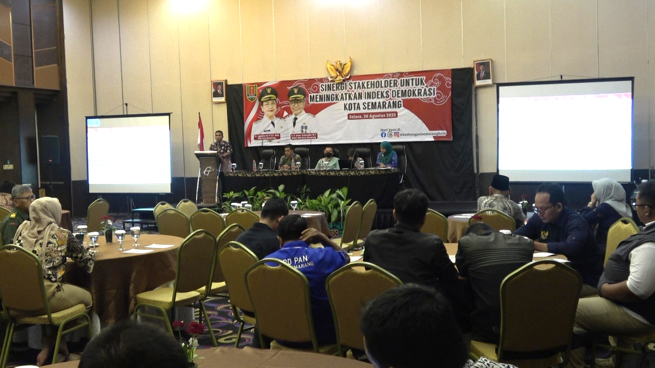 Acara yang dihadiri puluhan peserta dari unsur pemerintah, lembaga pendidikan, dan tokoh masyarakat ini membahas strategi peningkatan Indeks Demokrasi Kota Semarang agar tetap berada pada kategori sangat baik.
