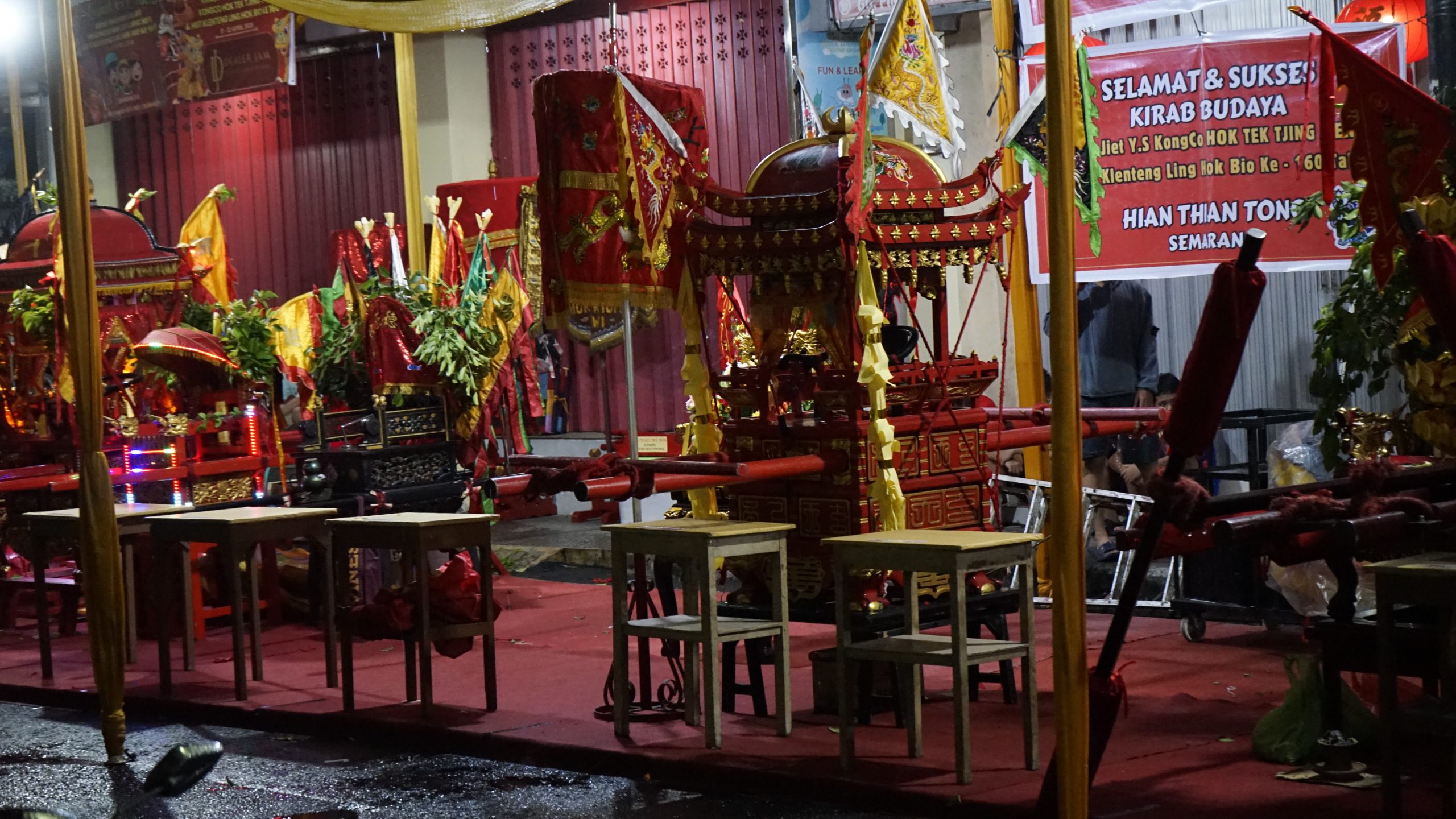 Puluhan replika klenteng, tandu Kim Sin, serta gunungan hasil bumi diarak melewati jalan-jalan ikonik seperti Gang Pinggir, Gang Lombok, Jalan MT Haryono hingga kembali ke titik awal. Iringan barongsai, liong, musik tradisional, serta petasan semakin menghidupkan suasana.