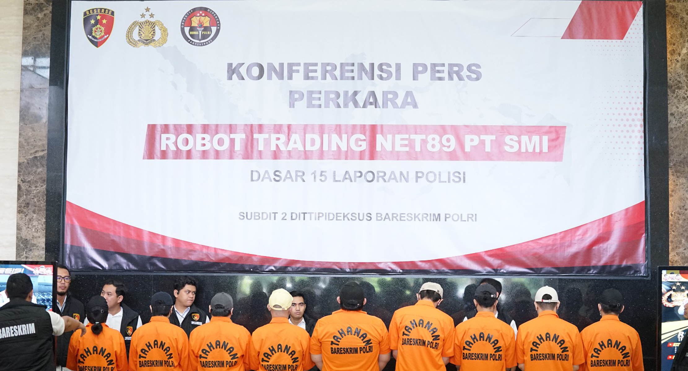 Brigjen. Pol. Helfi menyebutkan, “Satu tersangka korporasi adalah PT SMI; tiga DPO adalah AA, LSH, dan TL. Sementara yang tidak ditahan adalah BS dan IR; serta penahanan dilakukan kepada ESI, DI, YW, RS, AR, FI, AA, MA, dan IR.”