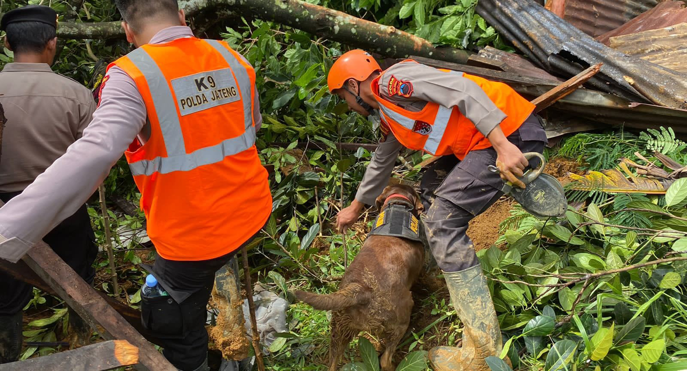Sebagai upaya dalam pencarian korban, Unit K9 dikerahkan dari Ditsabhara Polda Jateng. Melibatkan tiga anjing pelacak untuk membantu menemukan korban di tengah material longsor yang menutupi kawasan tersebut.